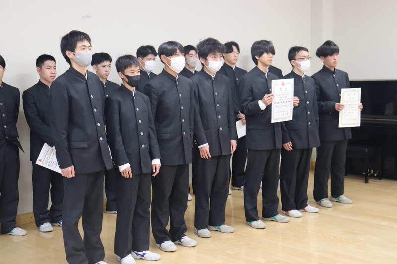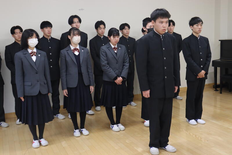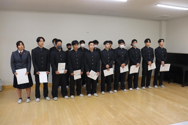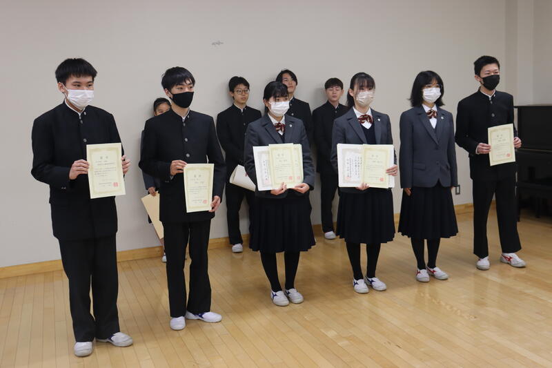 応募した富高生は全員一次審査を通過しました。その中で、1年の高橋駿、髙間吉平、橋本大空のグループが富岡商工会議所会頭賞を受賞しました。