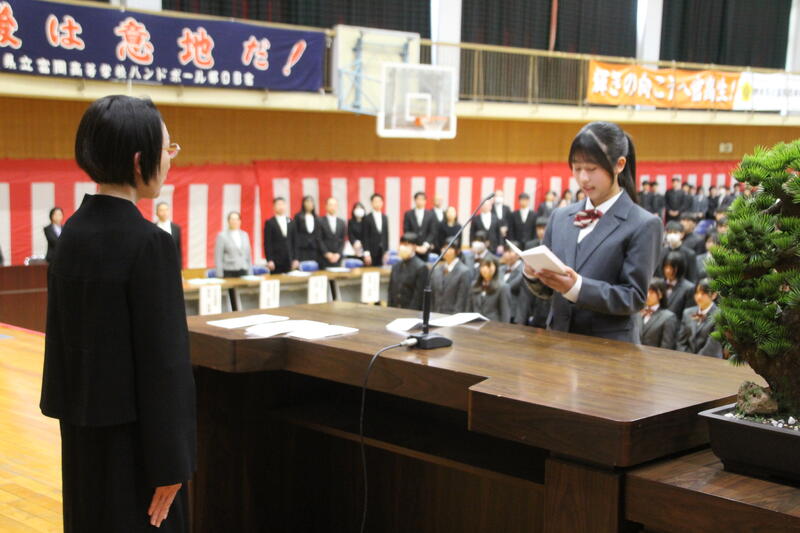 入学生代表による挨拶では、これから始まる高校生活への期待と、学業や行事に真摯に取り組むという力強い決意が述べられました。