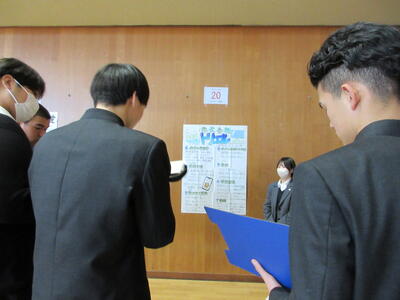 3月12日(木)午後、第1学年生徒が課題解決型インターンシップ報告会に臨みました。就業体験の報告に加え、自分が発見した企業・業界・地域社会の課題に対するアイディアを提案しました。