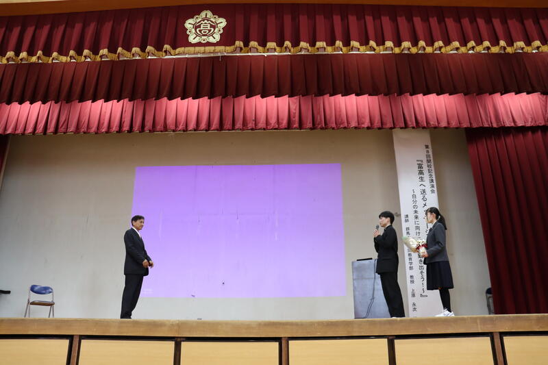 演題は「富高生に送るメッセージ ~自分の未来に向けて 一歩 動き出そう!~」ということで、生徒たちは貴重なお話を聞くことができました。